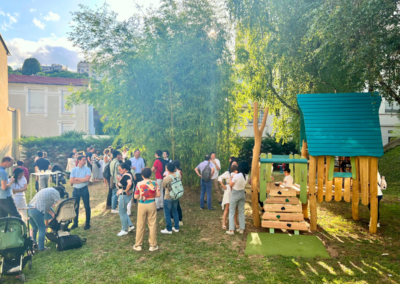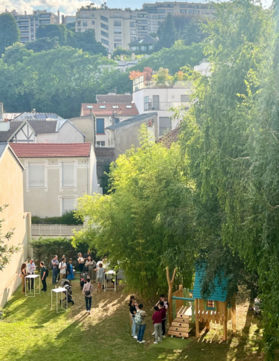 Pour célébrer l’achèvement de ces nouveaux locaux, le couple fondateur et le Directeur de l’École, David Péchoux, ainsi que tous les enseignants, ont organisé leur fête de l’été. Les invités comprenaient de nombreux parents et enfants, ainsi que tous les partenaires et amis qui ont prêté leur attention ou soutenu le projet. Autour du buffet organisé dans le jardin de l’école, les participants ont pu échanger avec l’équipe après avoir visité les locaux et le jardin dans une atmosphère estivale.