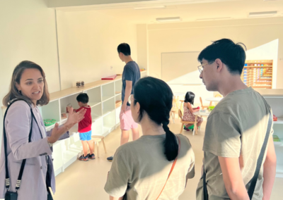 Au cours de l’événement, les parents ont échangé sur les qualités des locaux de l’école: les salles de classe lumineuses où chaque détail est conçu pour être chaleureux et accueillant ; les matériaux pédagogiques Montessori Nienhuis qui offrent aux enfants des ressources éducatives de haute qualité ; la sélection d’ouvrages etc. Mais aussi des sanitaires décorés de motifs d’animaux et équipés pour les différents âges de la maternelle. Dans le jardin, à l’usage exclusif de l’école, des installations extérieures telles qu’un toboggan et des jeux sur ressorts ont permis aux enfants de passer un moment joyeux et d’apprendre à se connaître.