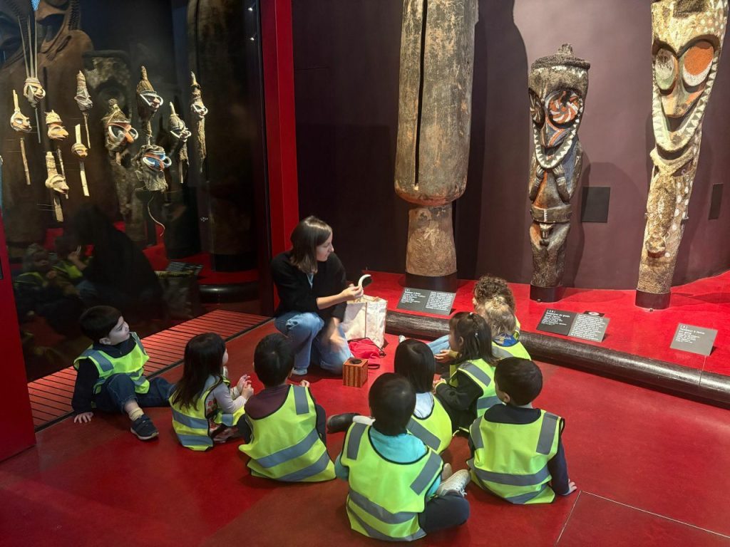 Enfin, la dernière étape nous a emmené en Amazonie où les bijoux et les plumes d’oiseaux ont constitué le point focal de l’observation et du toucher. Mais l’odorat n’a pas été oublié, car pour finir, les enfants ont pu explorer l’odeur peu familière de la fève de cacao ! Fascinés par ce voyage géographique et sensoriel, les enfants ont participé activement à l’atelier et rapporteront, sans doute, de beaux souvenirs à partager en famille.