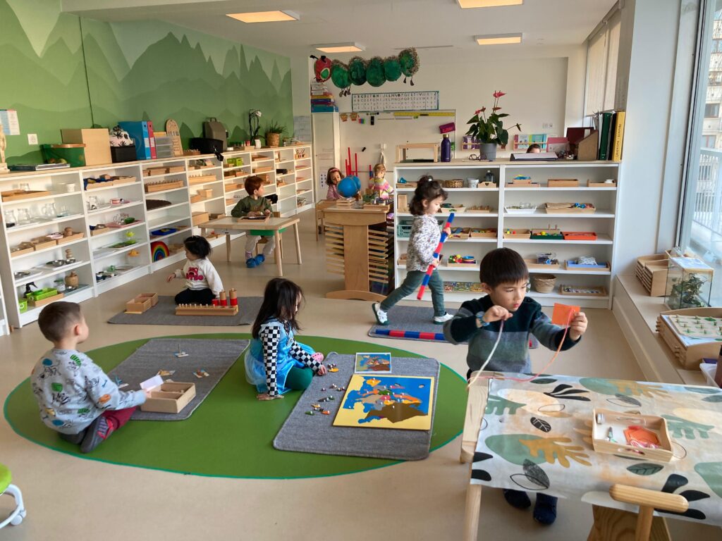 在3至6岁之间,儿童开始对时空有所认知并认识自己的身体。这也是孩子从形象思维发展到抽象思维的时期。所有这些发展都是通过身体的发现和实践活动完成的。身体的运动伴随着思维的运动。然而,使用屏幕会使孩子处于静止状态,并扰乱他们运动的自然节奏。这就是为什么孩子们在我们的课堂上既不是一动不动的,也不是固定在某一个地方,而是根据他们的需要和他们选择的学习主题来自由活动。